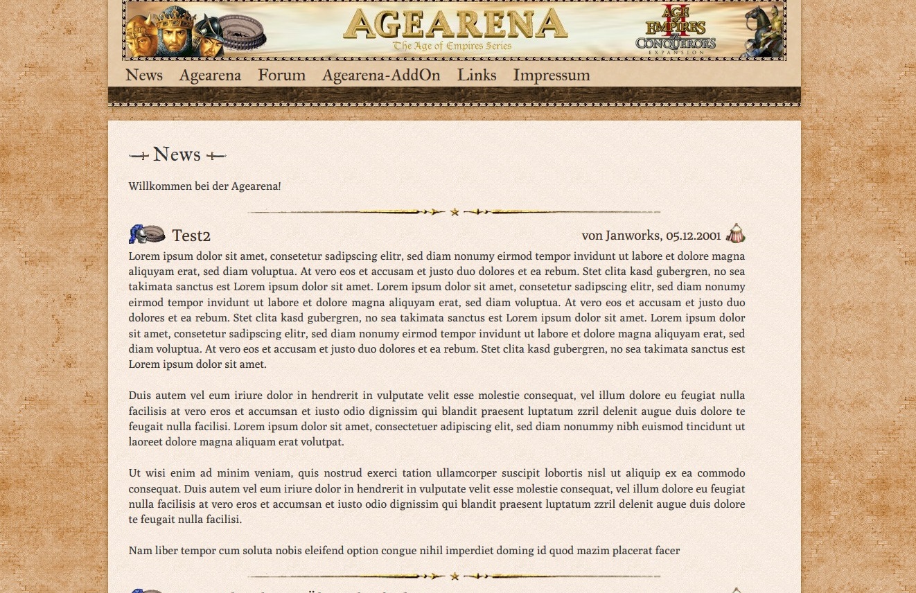 Ein für mich einfacherer und realistischer Ansatz wäre, die Hauptseite komplett durch eine Eigenentwicklung auszutauschen; ich habe vor nicht allzu langer Zeit ein kleines, aber ausreichendes Content Management System (CMS) entwickelt, das sich leicht für die Arena anpassen ließe, und alle nötigen Funktionen bietet. Meine Freundin hat sich auch schon fürs Webdesign angeboten, es soll natürlich der Stil der alten Seite erhalten bleiben